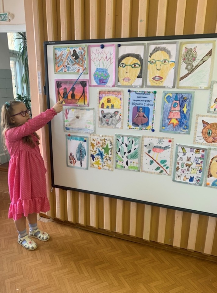 В подготовительной к школе группе № 4 (воспитатели Лескова Анна Николаевна, Череменова Людмила Кирилловна) проходитперсональная выставка творческих работ Царевой Софии.